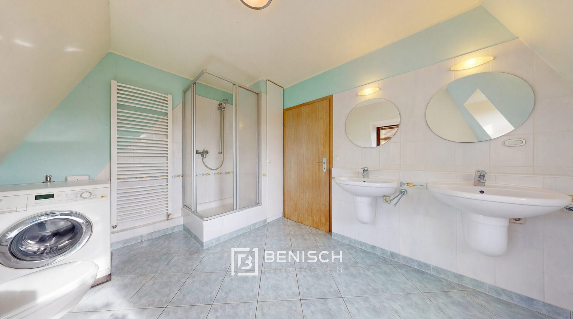 Echten Freiraum für die Familie bietet die 5-Zimmer-Maisonette im Ober- und Dachgeschoss inklusive Mansarde. Hier finden Sie nicht nur Platz, sondern echte Rückzugsorte: einen Balkon für ruhige Momente, eine zweite Einbauküche, ein separates Gäste-WC sowie ein großes Tageslichtbad mit Wanne, Dusche und Doppelwaschbecken. Handtuchheizkörper sorgen in beiden Bädern für den nötigen Komfort.
