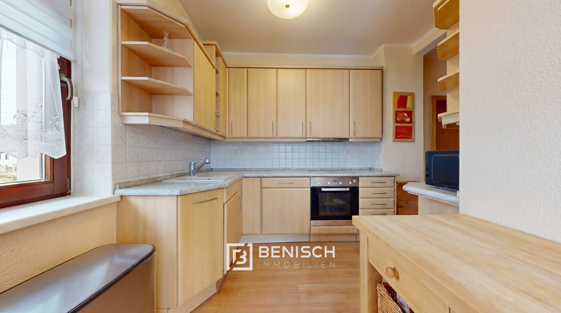 Im Erdgeschoss empfängt Sie eine 2021 modernisierte 3-Zimmer-Wohnung. Mit zeitgemäßen Laminatböden, hochwertigen Türen, einer voll ausgestatteten Einbauküche und einem Tageslichtbad mit Badewanne ist diese Etage sofort bereit für den Einzug.