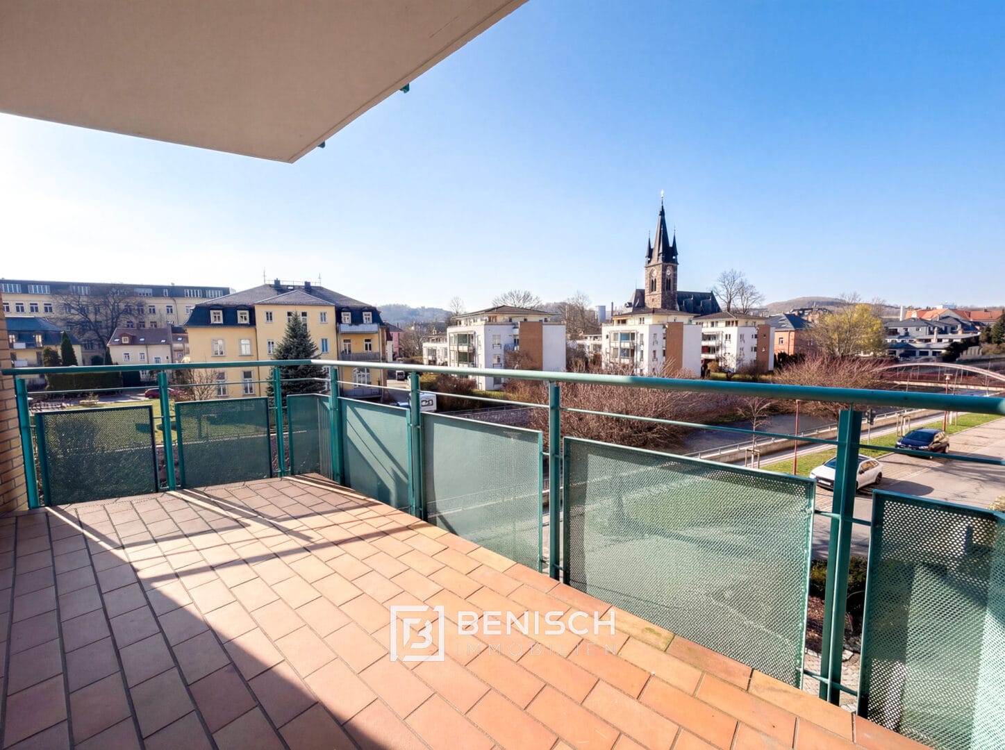 Ein besonderes Merkmal ist der ca. 8 m² große Balkon, der zusätzlichen Raum im Freien bietet und einen direkten, unverstellten Ausblick auf den Lauf der Weißeritz ermöglicht.