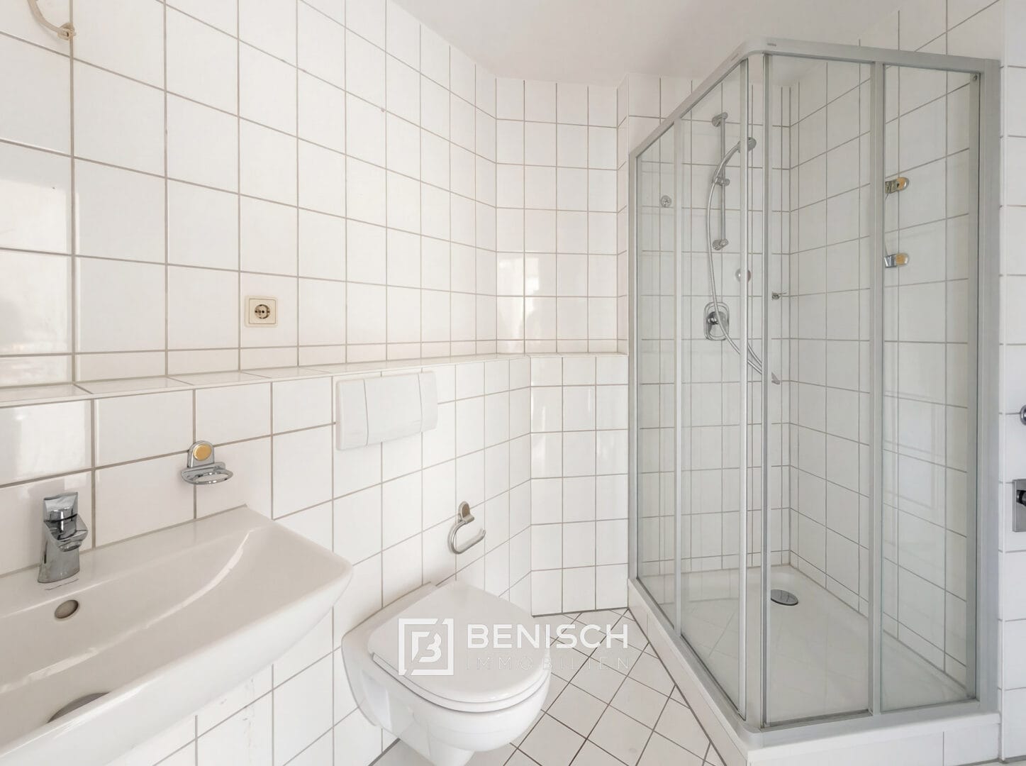 Das großzügig gestaltete Badezimmer ist sowohl mit einer Badewanne als auch mit einer separaten Dusche ausgestattet und verfügt zudem über einen praktischen Waschmaschinenanschluss direkt in der Wohneinheit.