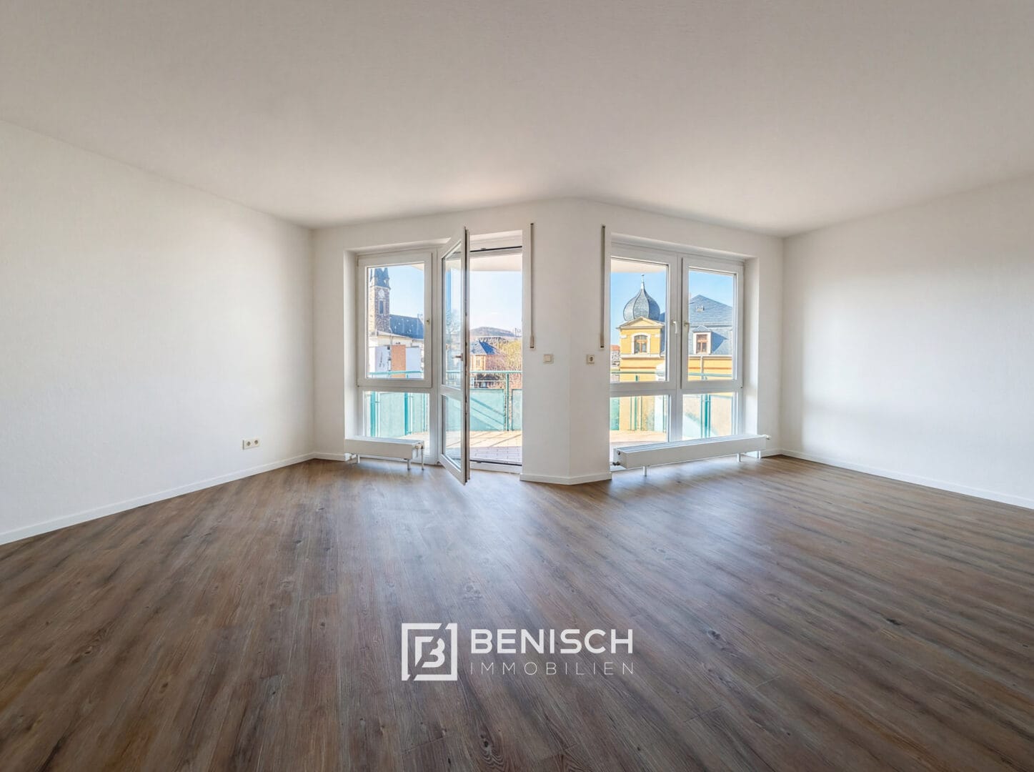 Die hellen Wohnräume sind mit einem hochwertigen, pflegeleichten Laminatboden ausgestattet, der eine zeitgemäße Wohnatmosphäre schafft.