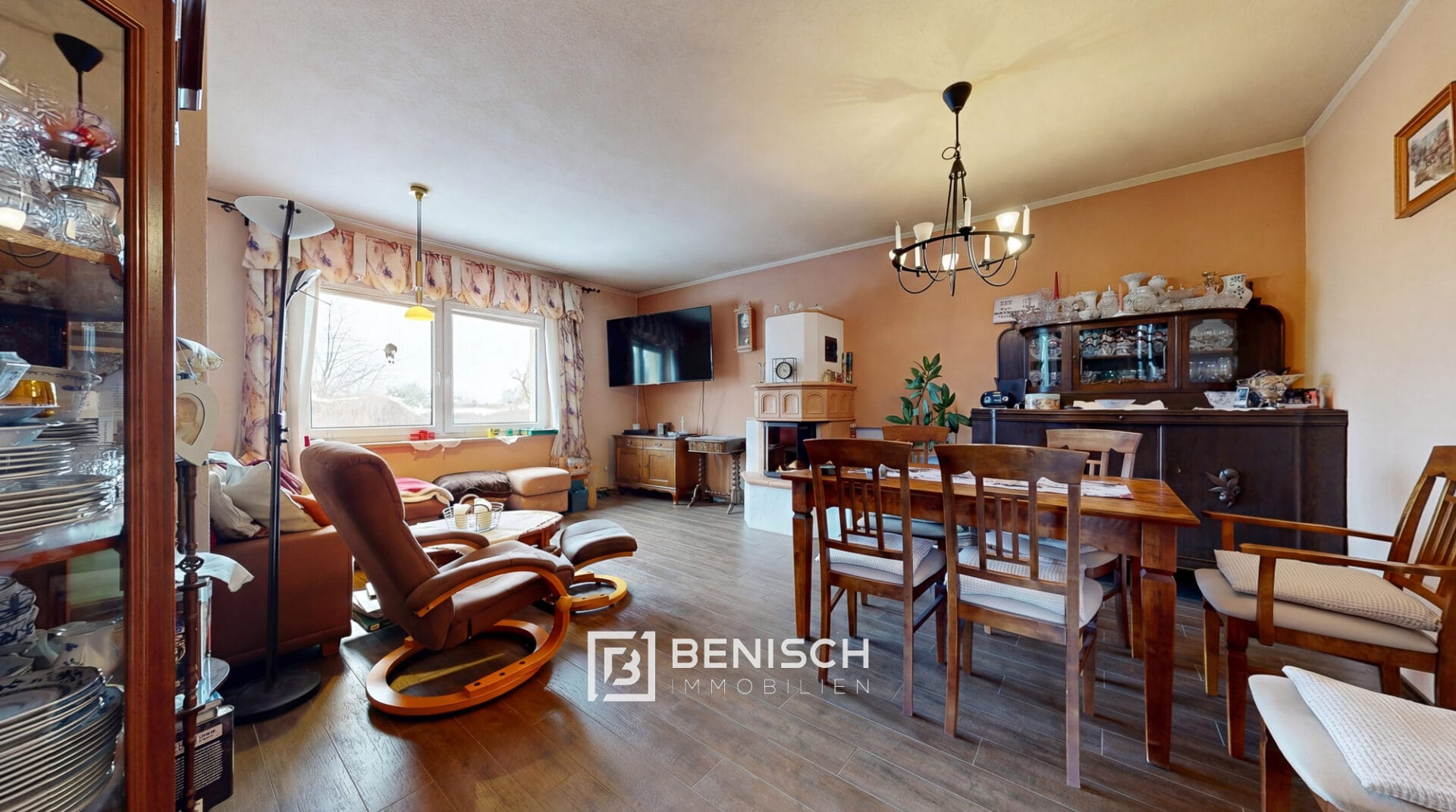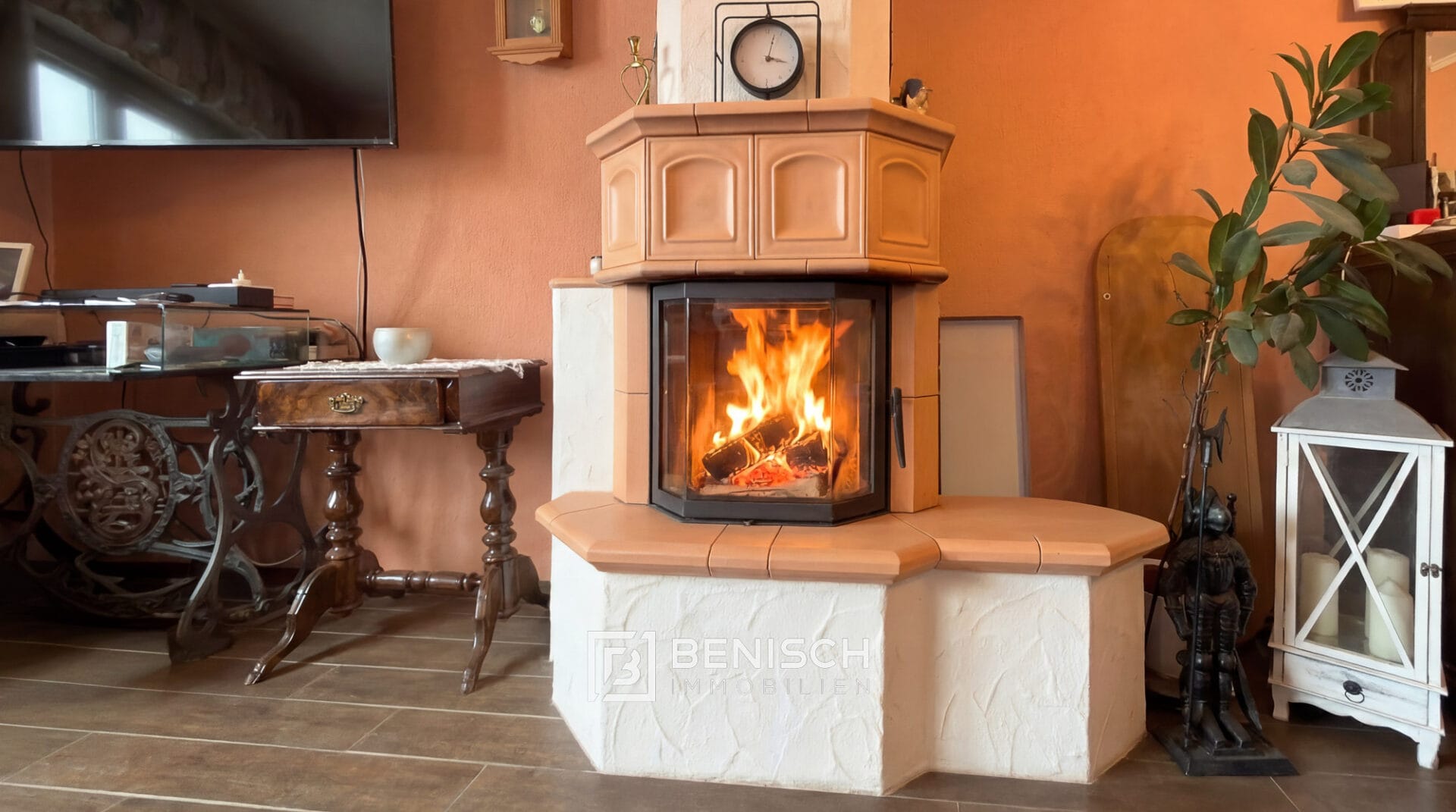 Schon der abgeschlossene Eingangsbereich empfängt Sie mit einem angenehmen Gefühl von Privatsphäre. Im Wohnzimmer bildet der Kamin das Herzstück und sorgt gemeinsam mit der im gesamten Haus installierten Fußbodenheizung für eine wohlige Wärme und eine gemütliche Atmosphäre an kalten Tagen. Die gepflegte Einbauküche ist bereits mit allen wichtigen Elektrogeräten ausgestattet und bereit für den Familienalltag.